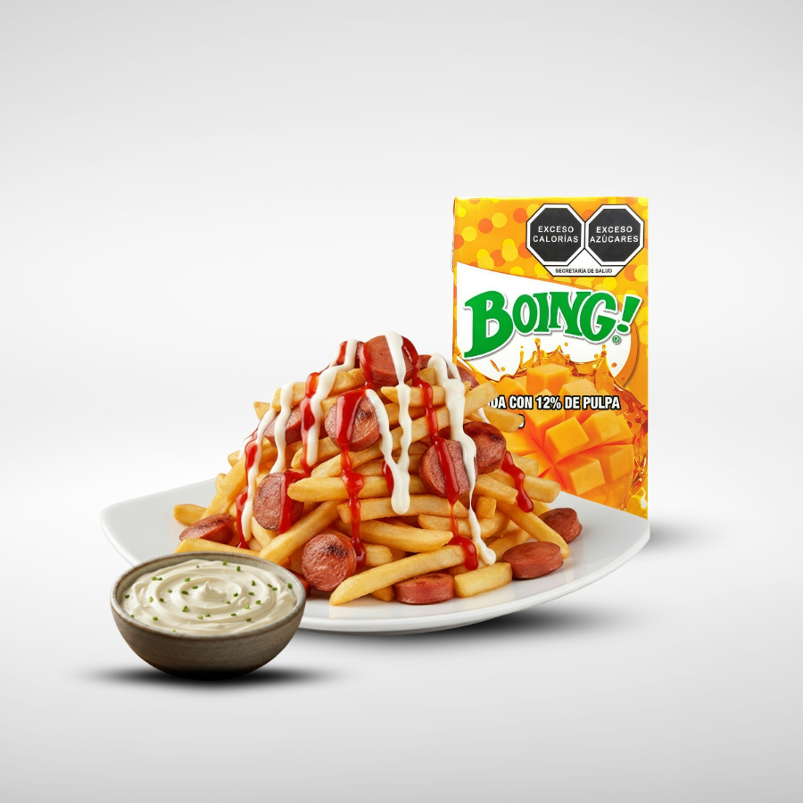 1 Salchipapas + 1 Boing de Mango 250ml + 1 aderezo