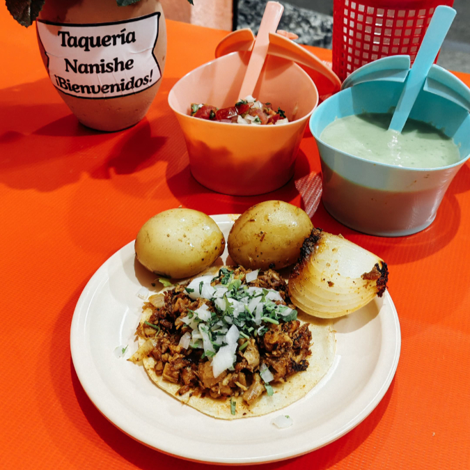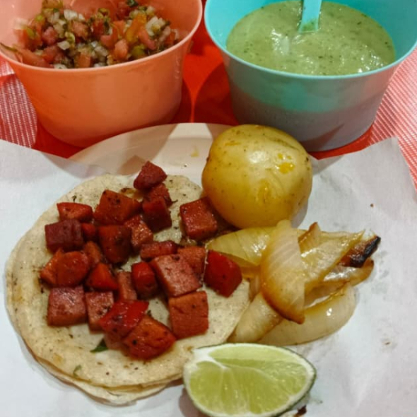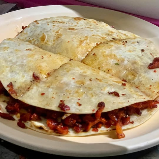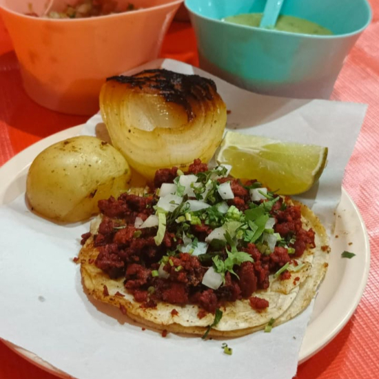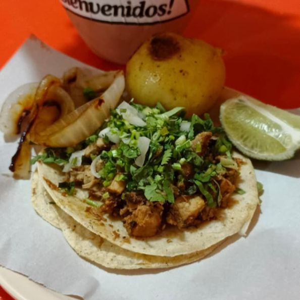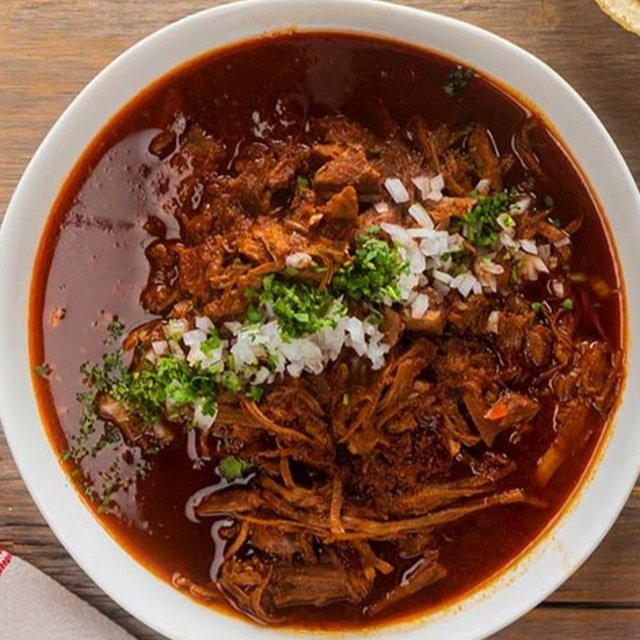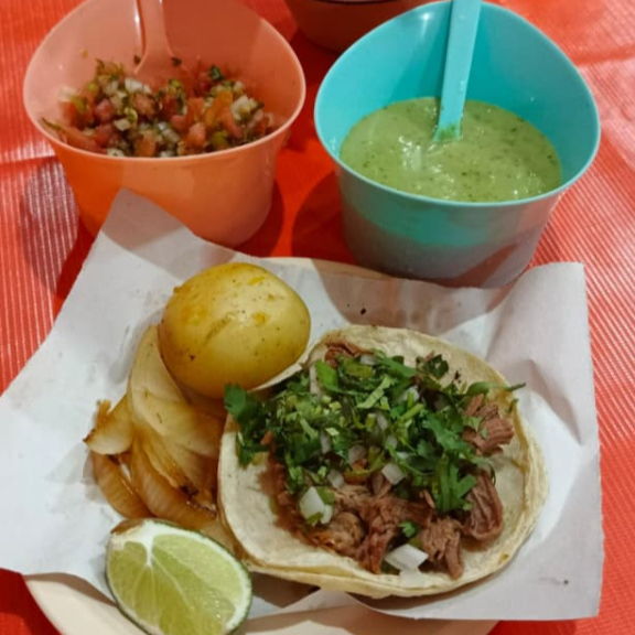 carne de barbacoa, con cebolla y cilantro ( acompañado con tortilla)