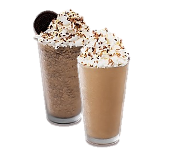 2 bebidas: mezcla de la casa para moka frío y Capuccino frio con galleta triturada. El tamaño y personalización aplica para ambas bebidas
