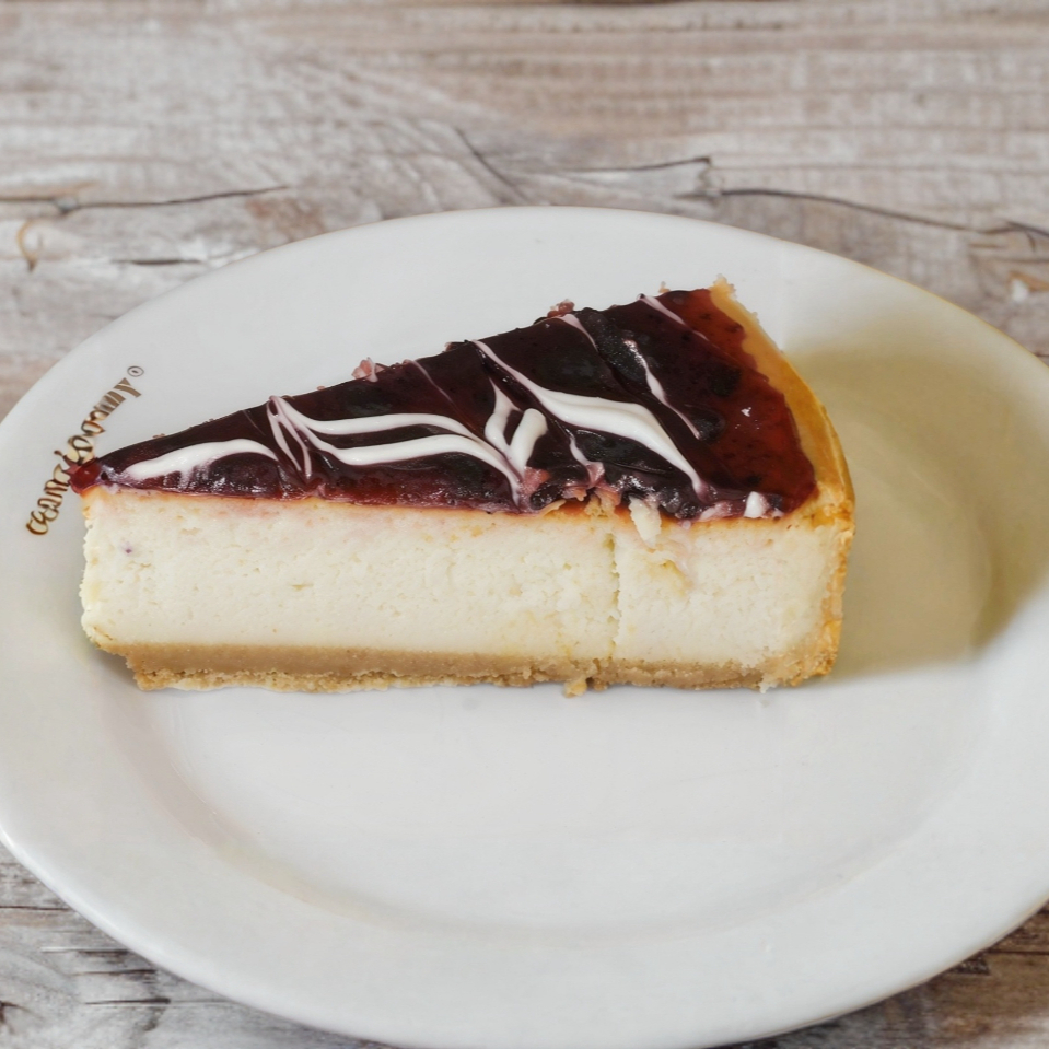 Base de galleta y queso con mermelada de zarzamora.