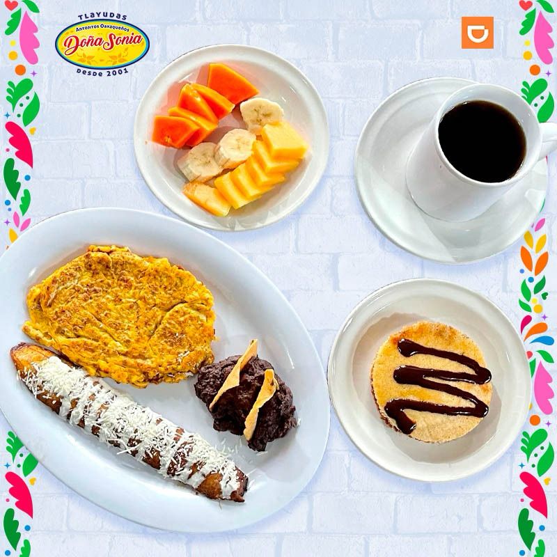 Incluye 1 orden de huevos al gusto, un café de olla, plato pequeño de frutas y 1 hot cake.