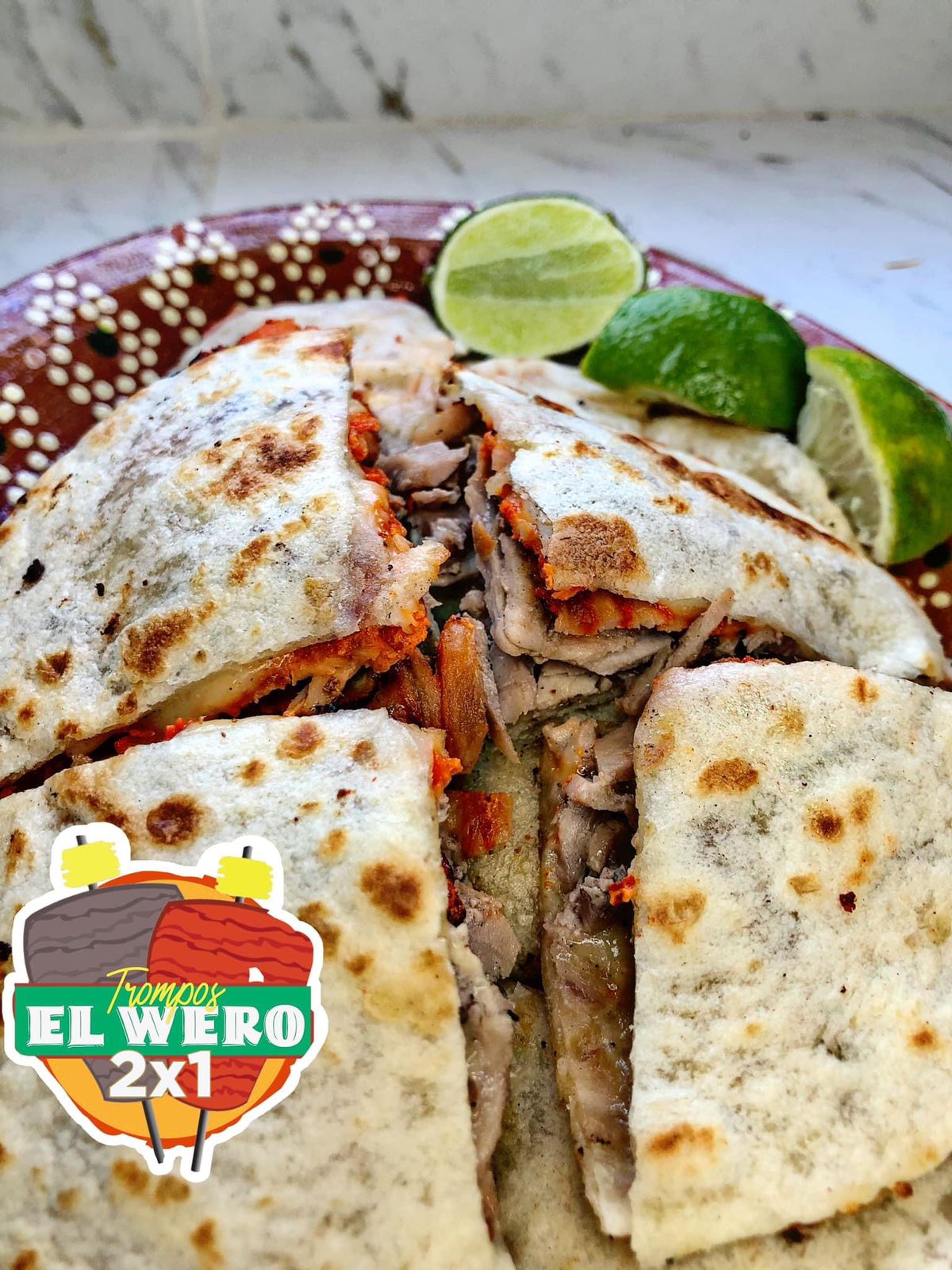 Doble tortilla de harina, carne y queso.