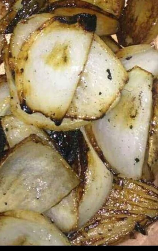 Media cebolla rebanada asada.