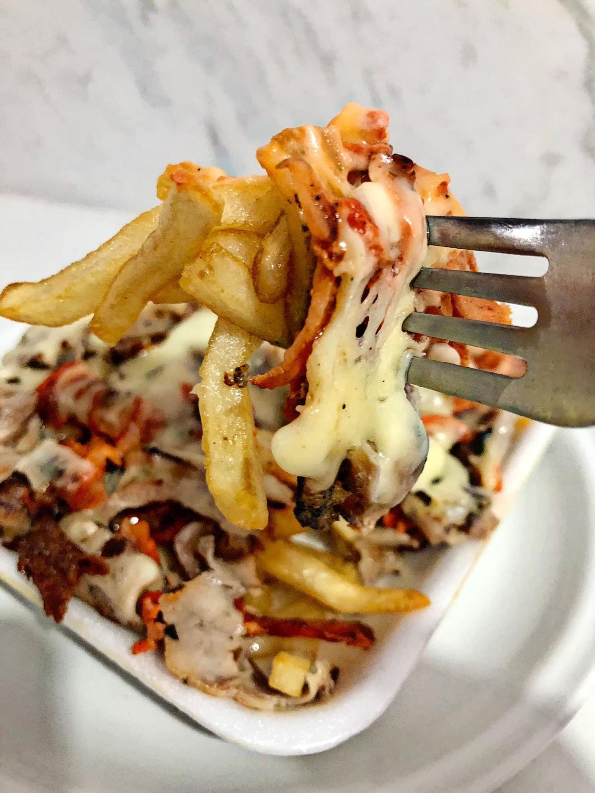 100 g De carne, 100 g de papas y queso.