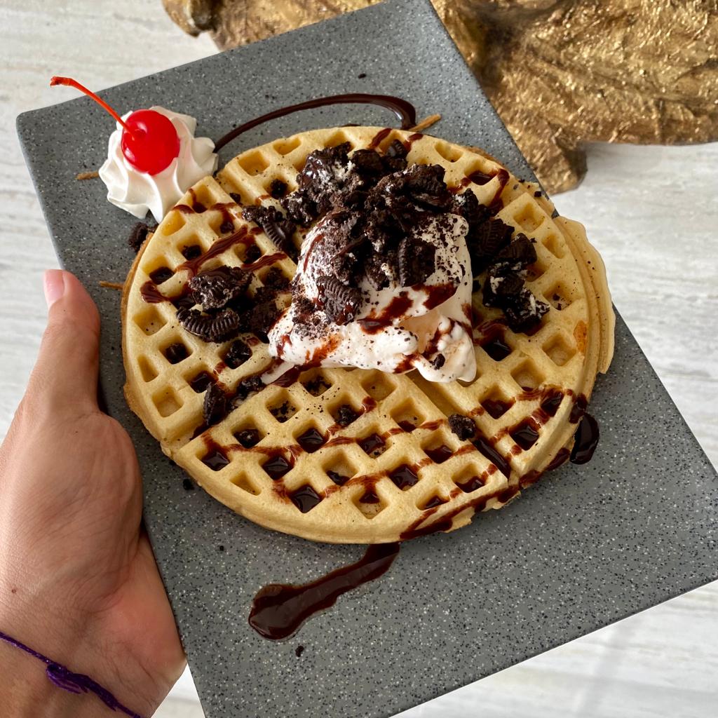 Waffle con helado
