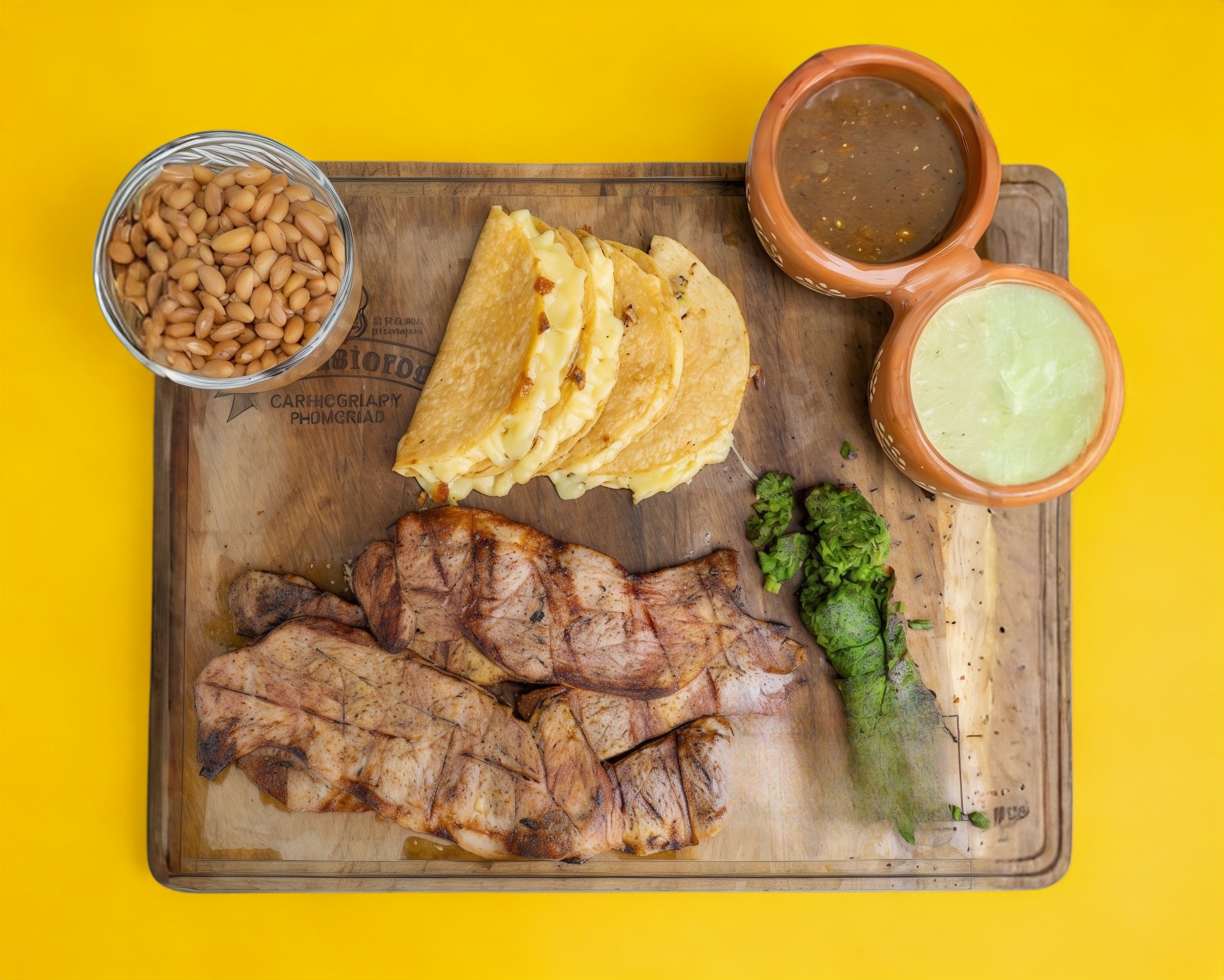 Arrachera 250 gr con salsas de la casa, 6 tortillas, frijoles, cebollitas y nopales.