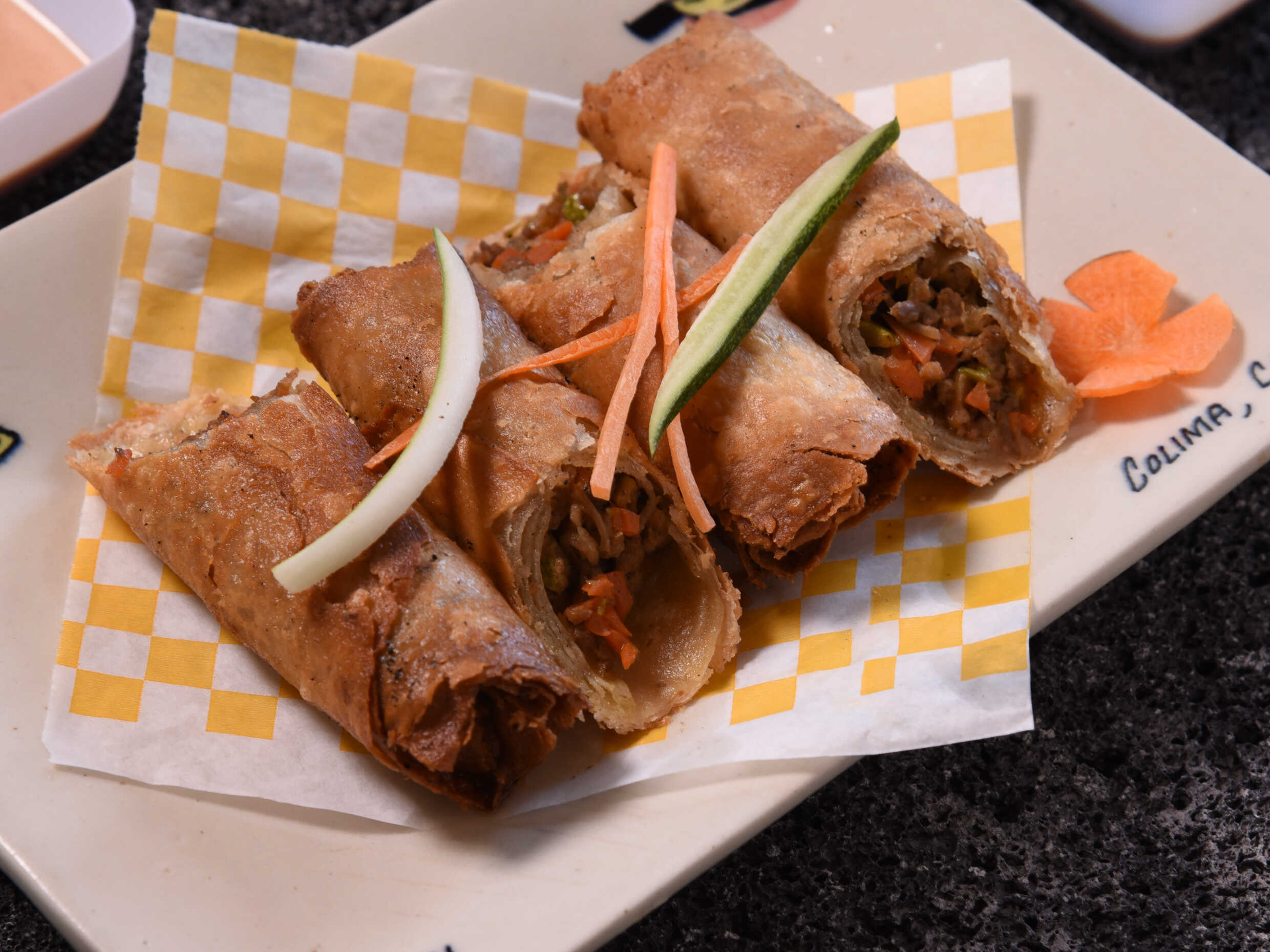 2 Rollitos primavera, 2 piezas de yaketz, té helado.