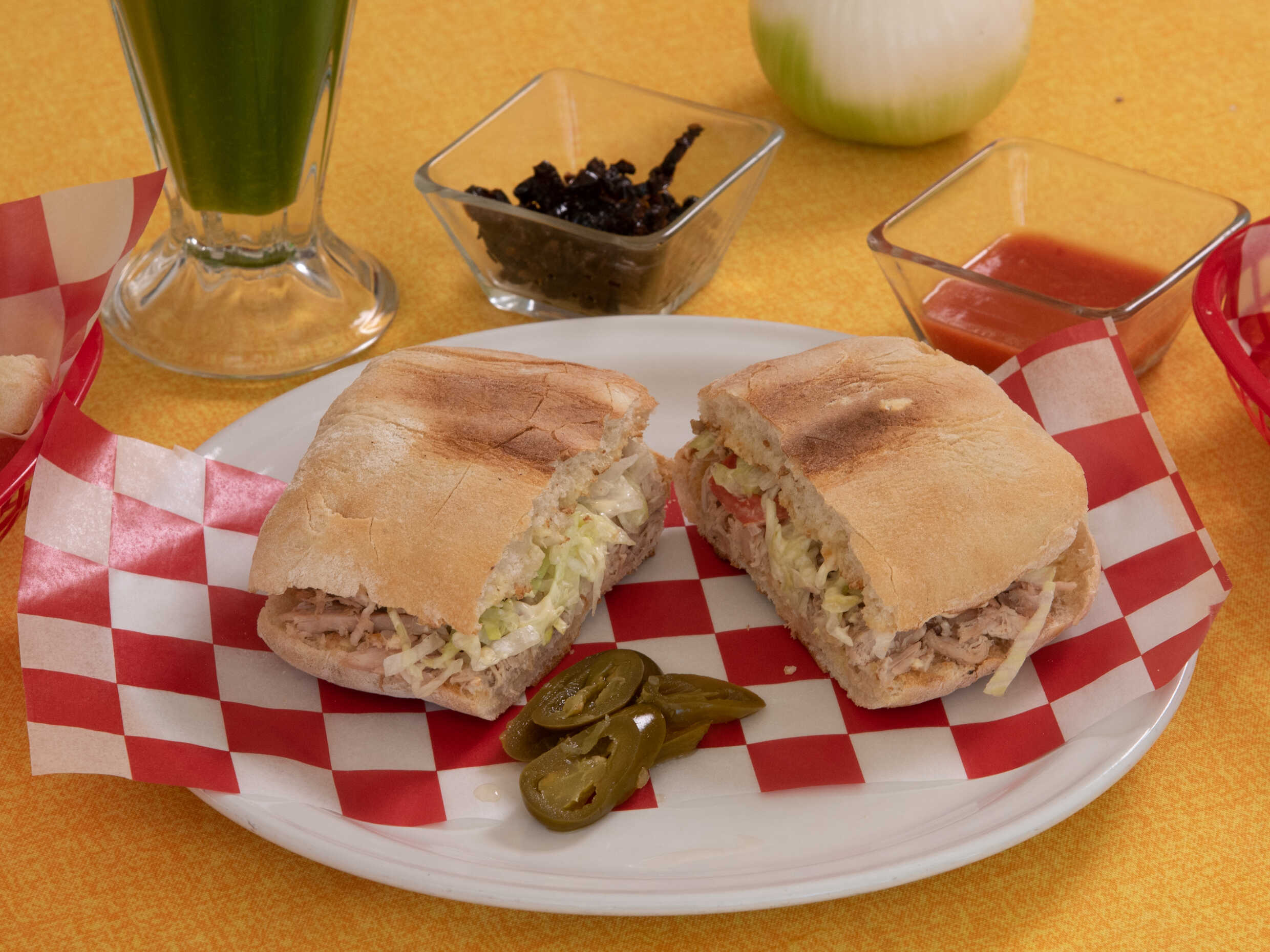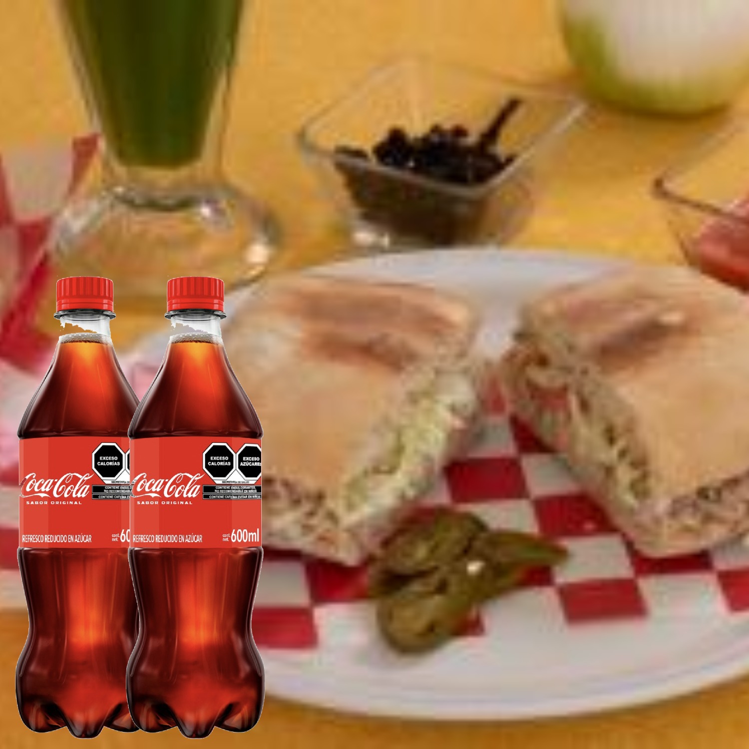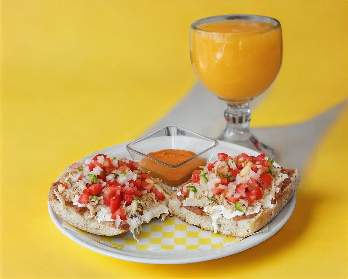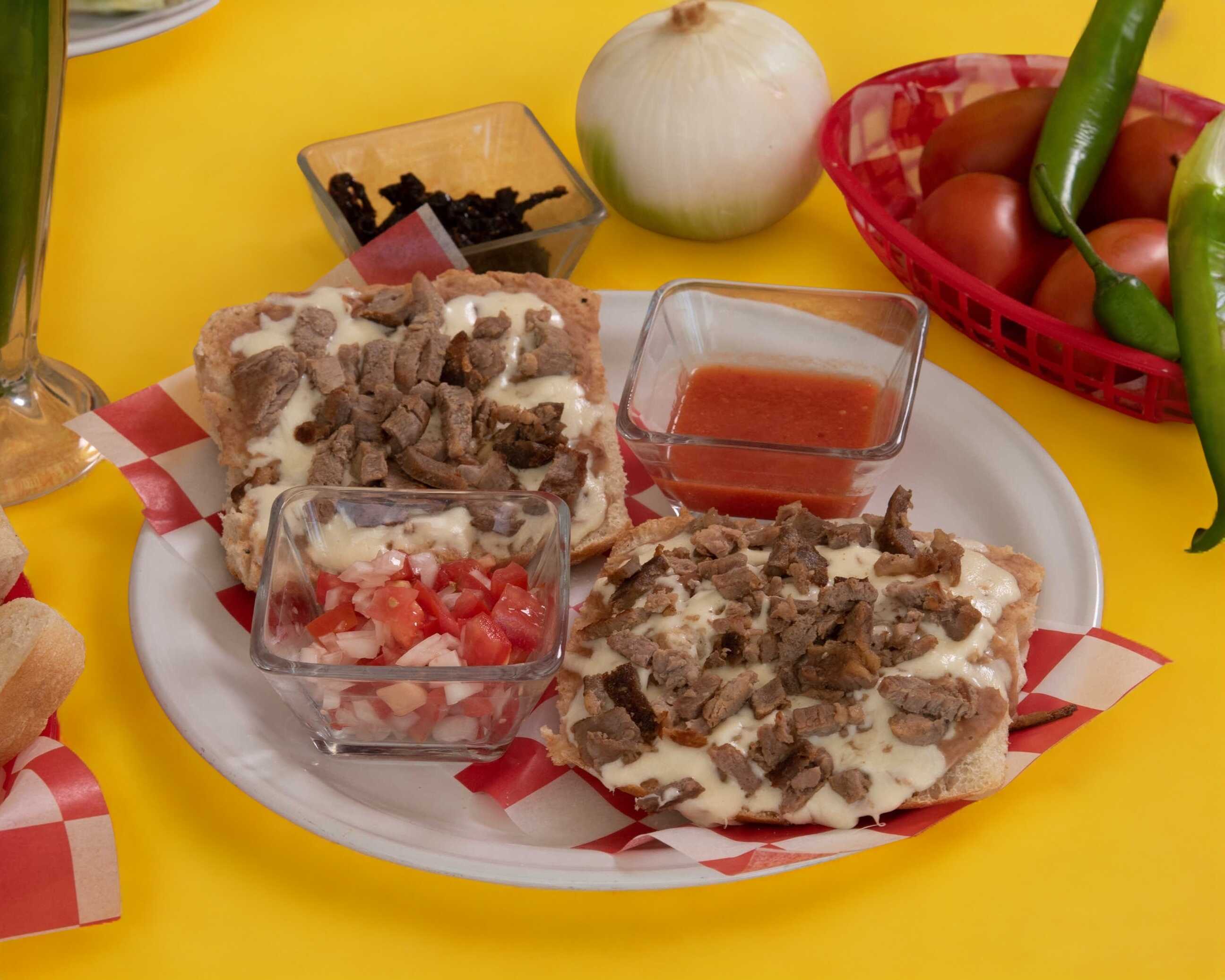 2 Piezas, telera dorada con frijoles, queso asadero, pico de gallo y salsas.