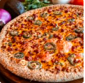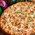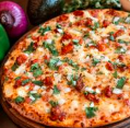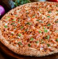Elaborado con extra queso, carne de cochinita, chile manzano, cebolla morada y salsa habanera. 35 cm con 8 rebanadas ideal para 4 personas