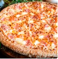 Elaborada con extra queso, jamón y piña. Pizza cruji (masa ligera) de 30 cm con 16 rebanadas ideal para 2 personas.