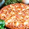 Elaborada con extra queso, jamón y piña. 30 cm con 8 rebanadas ideal para 2 personas