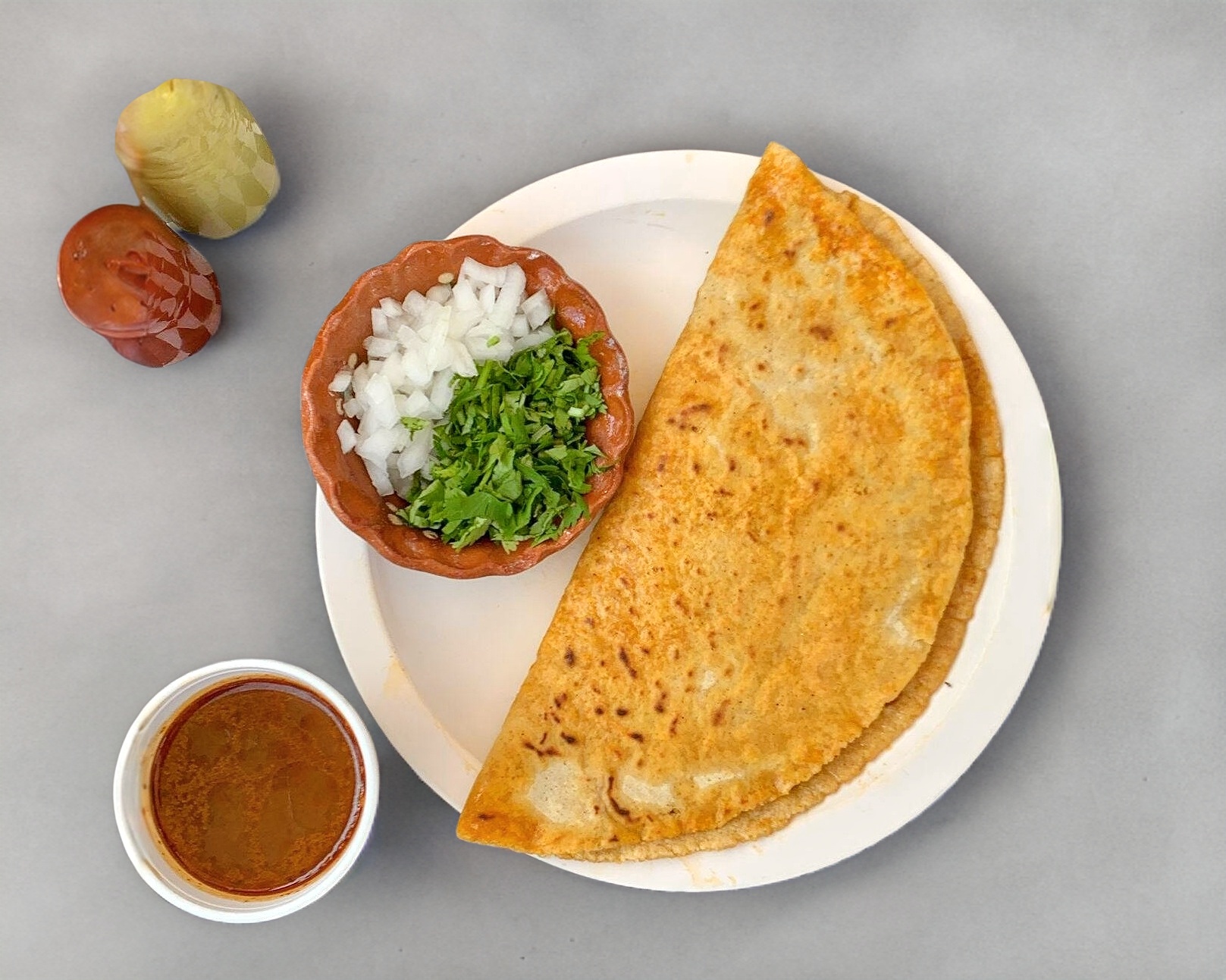 3 de chamorro y 1 de frijol. Incluye consomé, verdura y salsas.