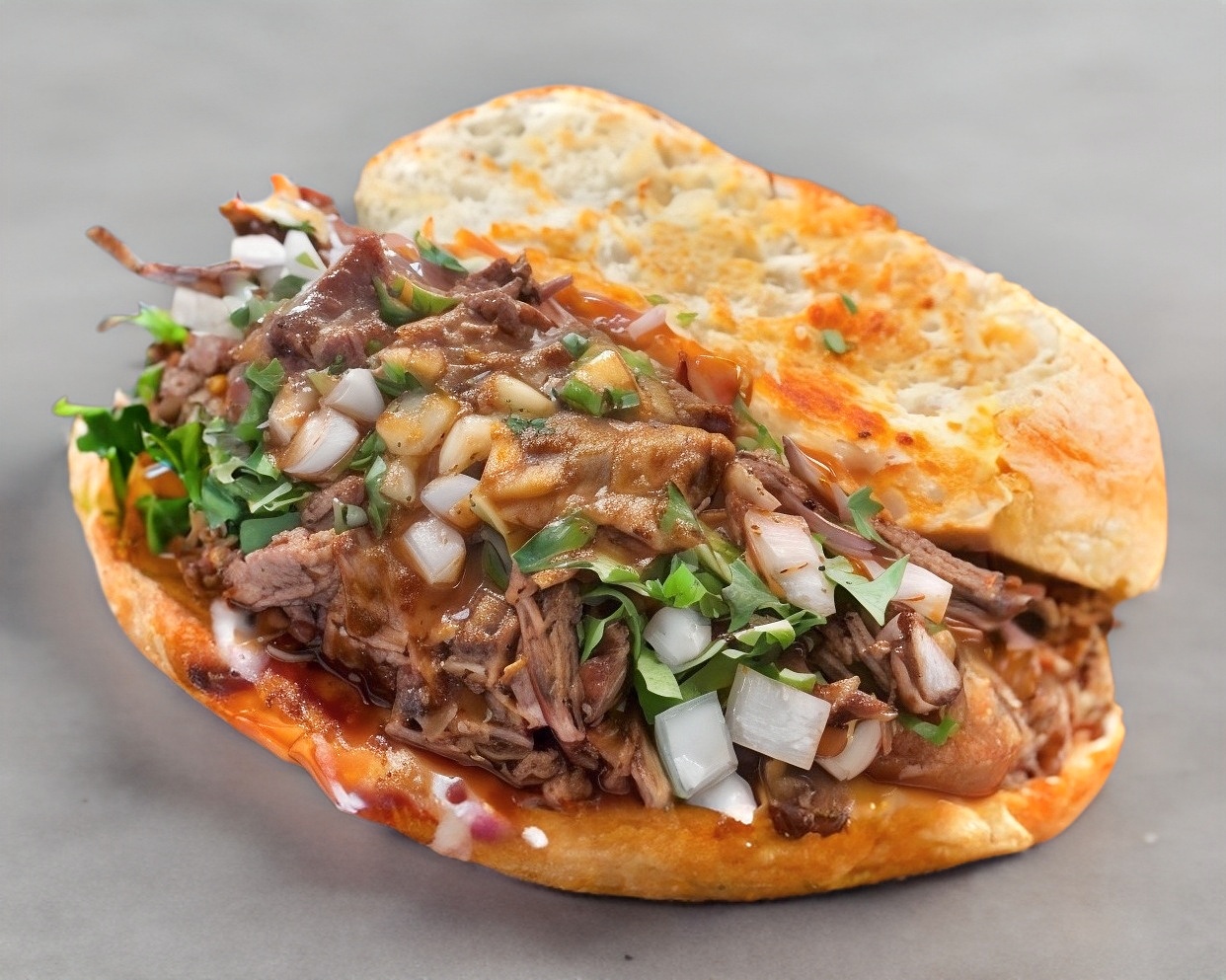 Chamorro entero; incluye porción de frijoles, salsa y cebolla.