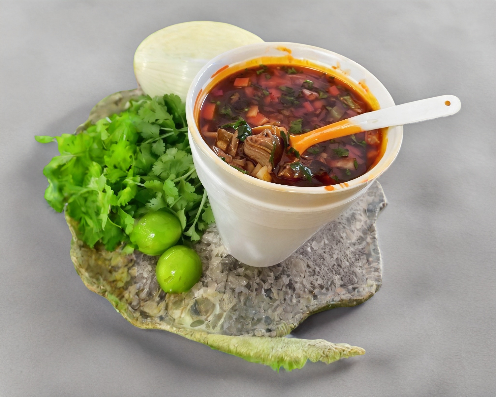 1/2 litro; incluye porción de frijoles puercos, salsa y verdura