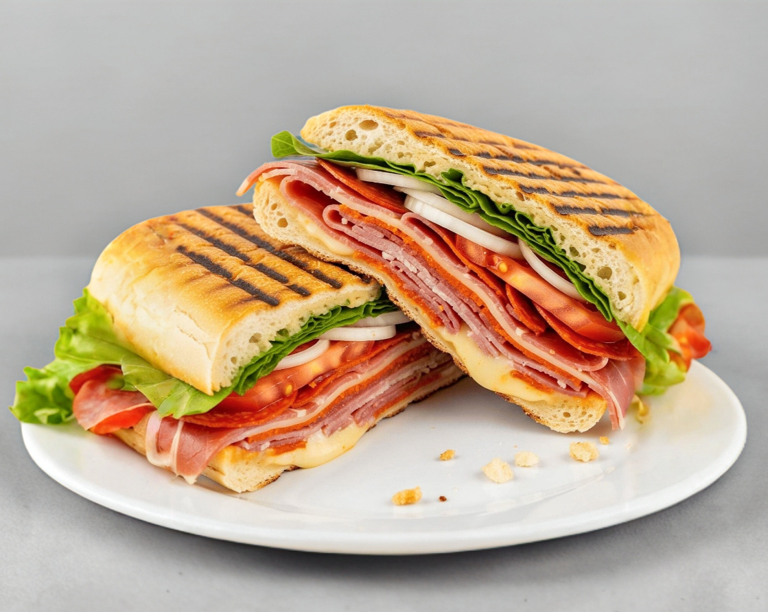 1 Sandwich personal con Pan de Masa Madre, Jamón, Pepperoni,Salami y Queso Manchego OPCIONAL: Vegetales