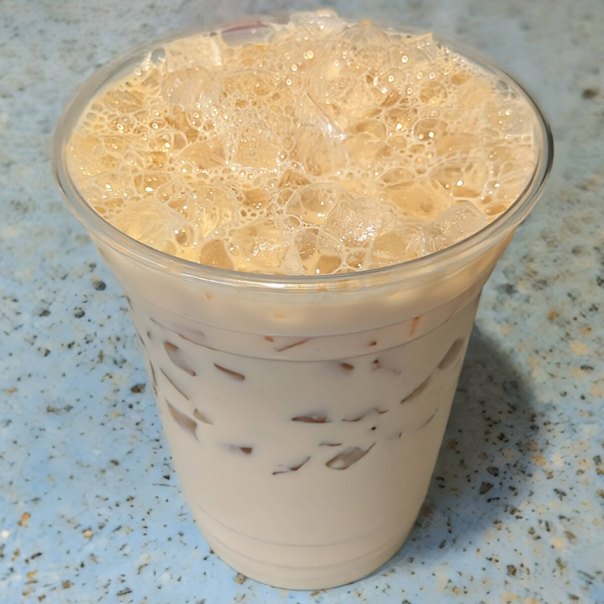 Nuestro chai de la casa (mezcla de té negro y diversas especias) con leche fría. Perfecto balance entre lo dulce y especiado. (Vaso 16oz)