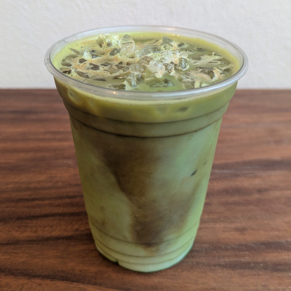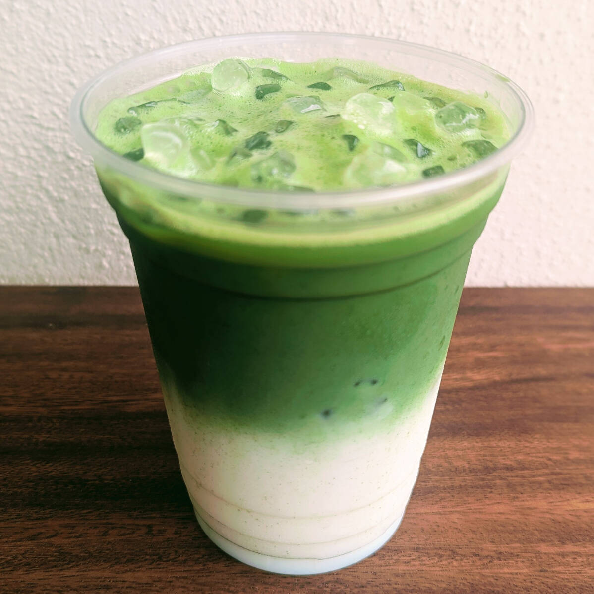 Té Matcha, leche, el toque dulce de la miel, todo perfectamente mezclado con hielo.