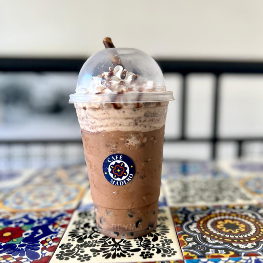 Nuestra especialidad bebida frapeada con sabor de tu elección, topping de crema batida, barquillo y chocolate, tamaño de 473 ml.