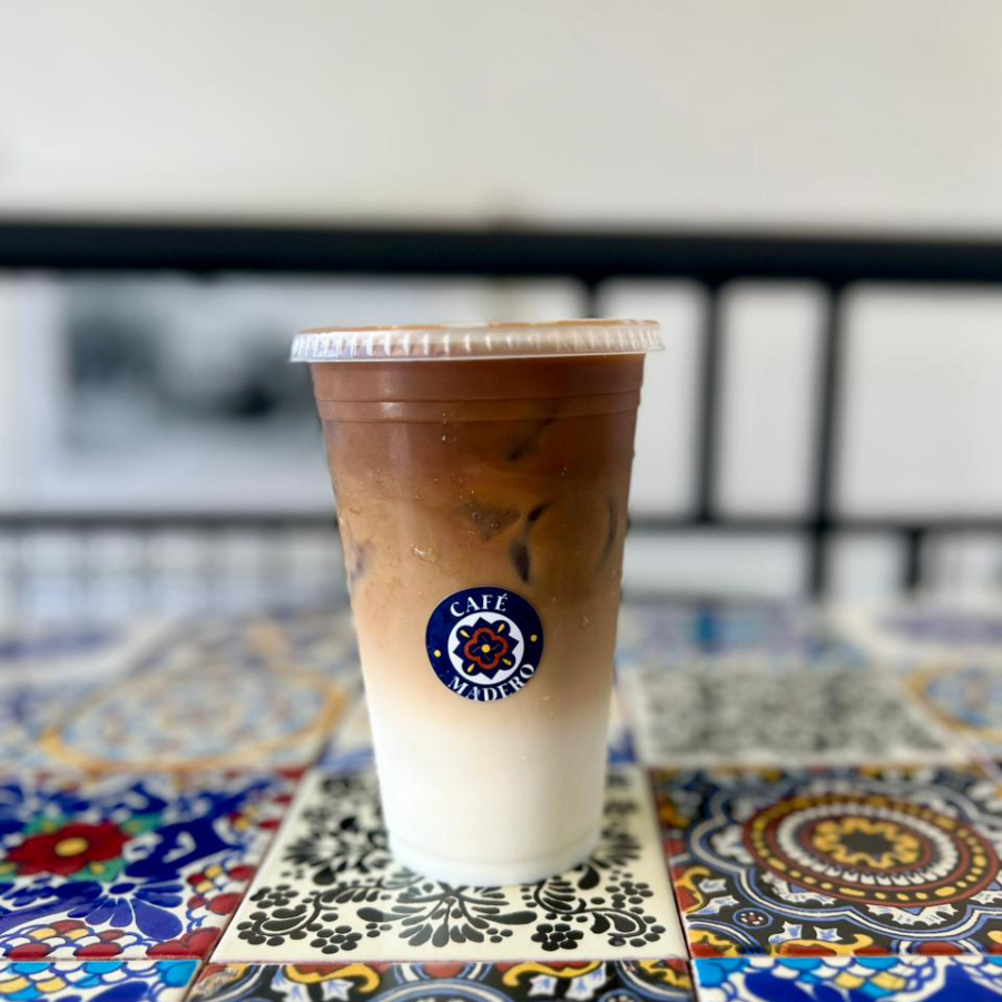 Café expreso mezclado con leche, hielo y el sabor de tu preferencia, tamaño de 473 ml.