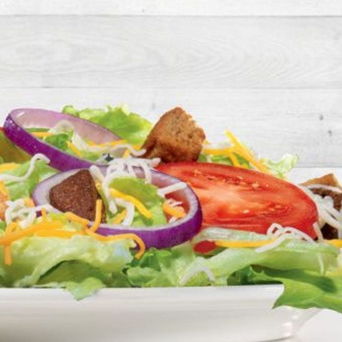 2 Piezas de chicken tender, sobre una mezcla de lechuga, tomate, cebolla morada, pepino y zanahoria rallada. Acompañadas con queso y crotones