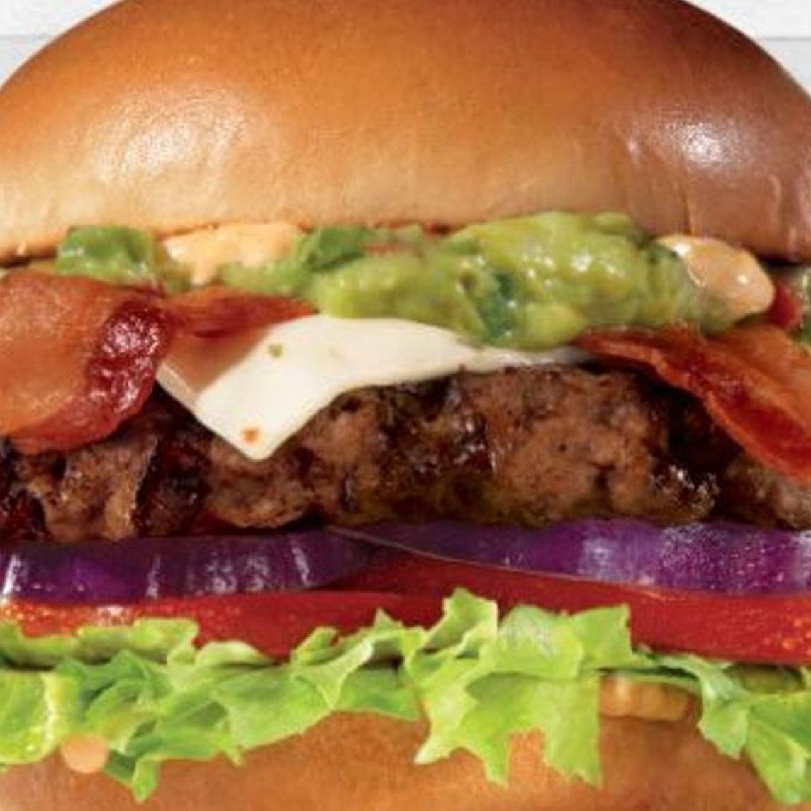 Con carne Black Angus, queso Pepper Jack, guacamole, tocino ahumado, lechuga, tomate, cebolla morada, y salsa Santa Fe.