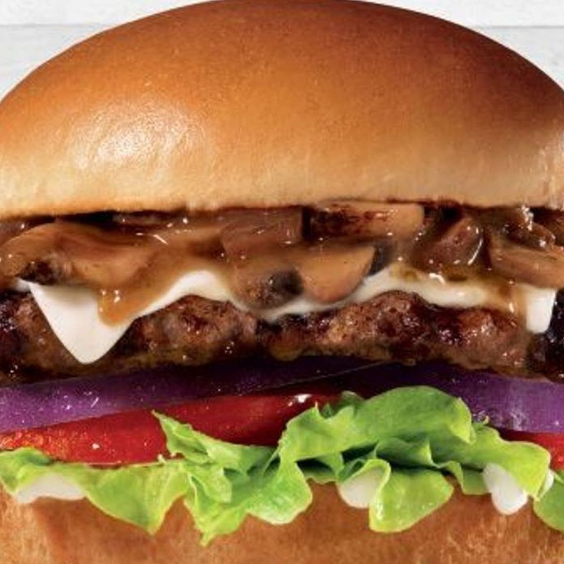 Con carne 100% Black Angus, queso Suizo, champiñones salteados, lechuga, tomate, cebolla morada y mayonesa. Servida en pan premium.