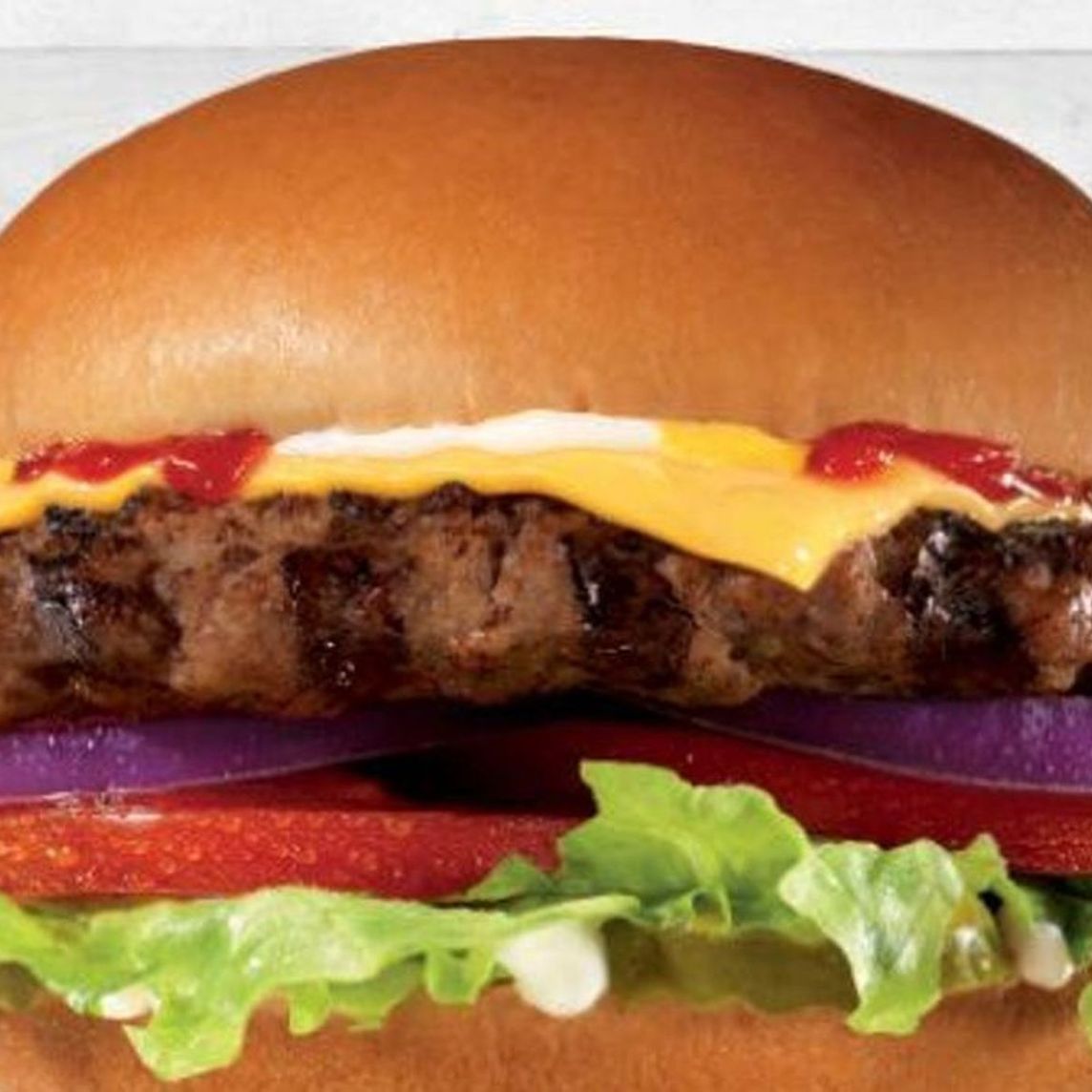 Con carne 100% Black Angus, queso Americano, lechuga, tomate, cebolla morada, mostaza, mayonesa y salsa Cátsup. Servida en pan premium.
