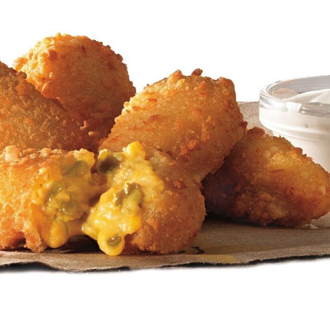 Tiras de pechuga de pollo empanizadas a mano al ordenar. Servidas con opción de aderezo Honey Mustard, Buttermilk Ranch o BBQ.
