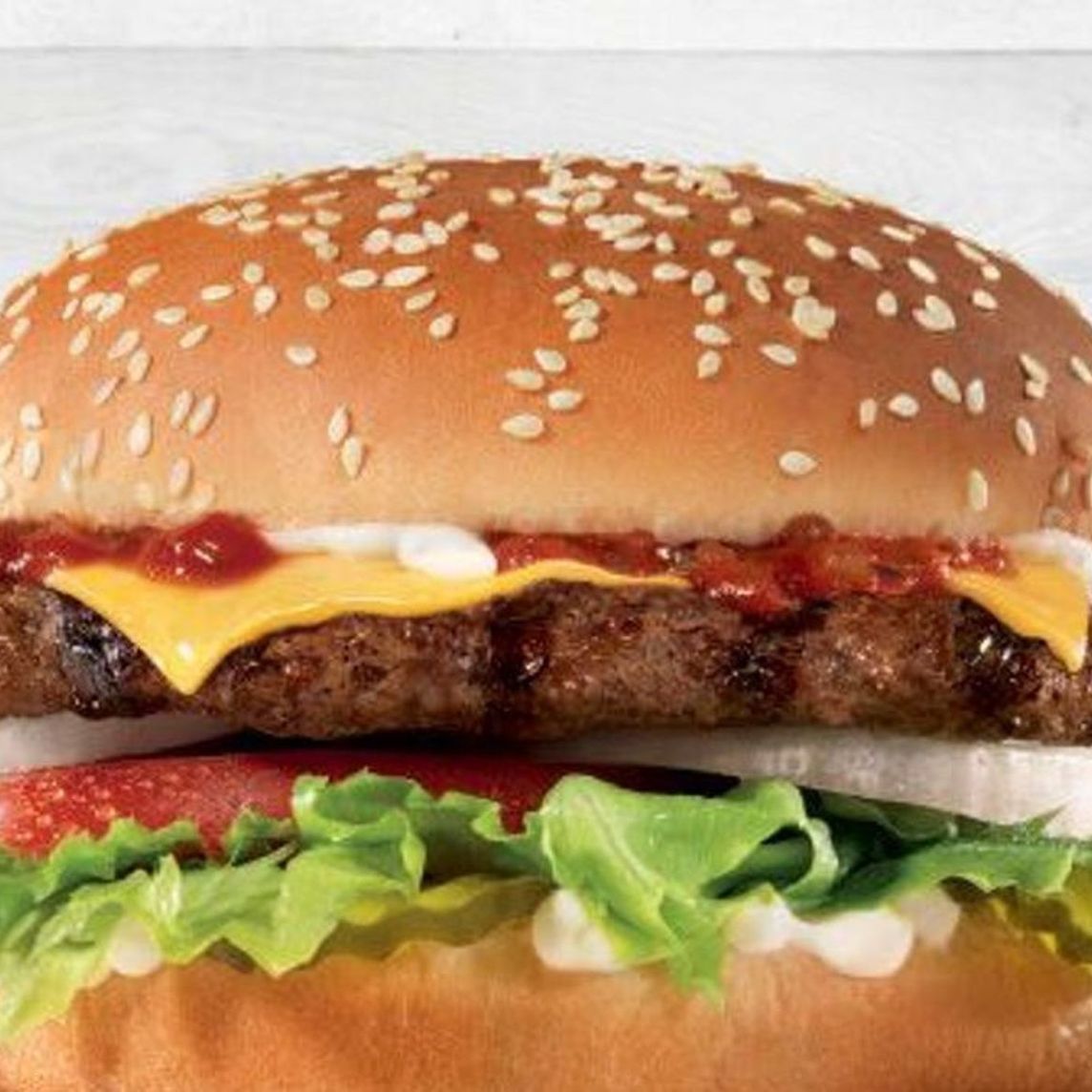 Con carne 100% de res, queso Americano, tocino ahumado, aros de cebolla y salsa BBQ. Servida en pan con ajonjolí.
