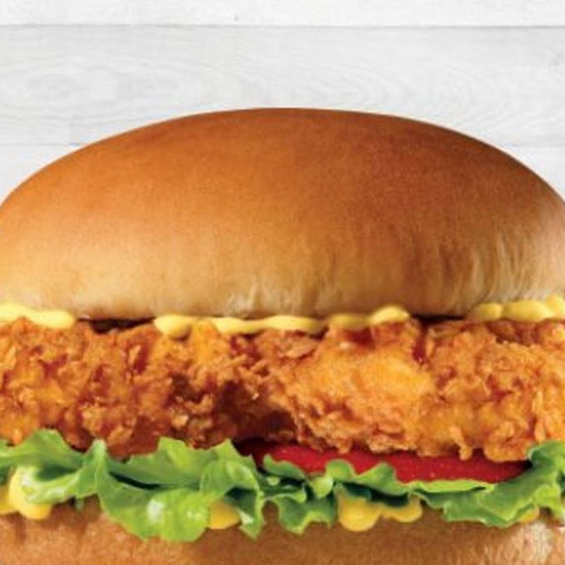 Con 2 Hand-Breaded Chicken Tenders, lechuga, tomate y aderezo Honey Mustard. Servido en pan sencillo.
