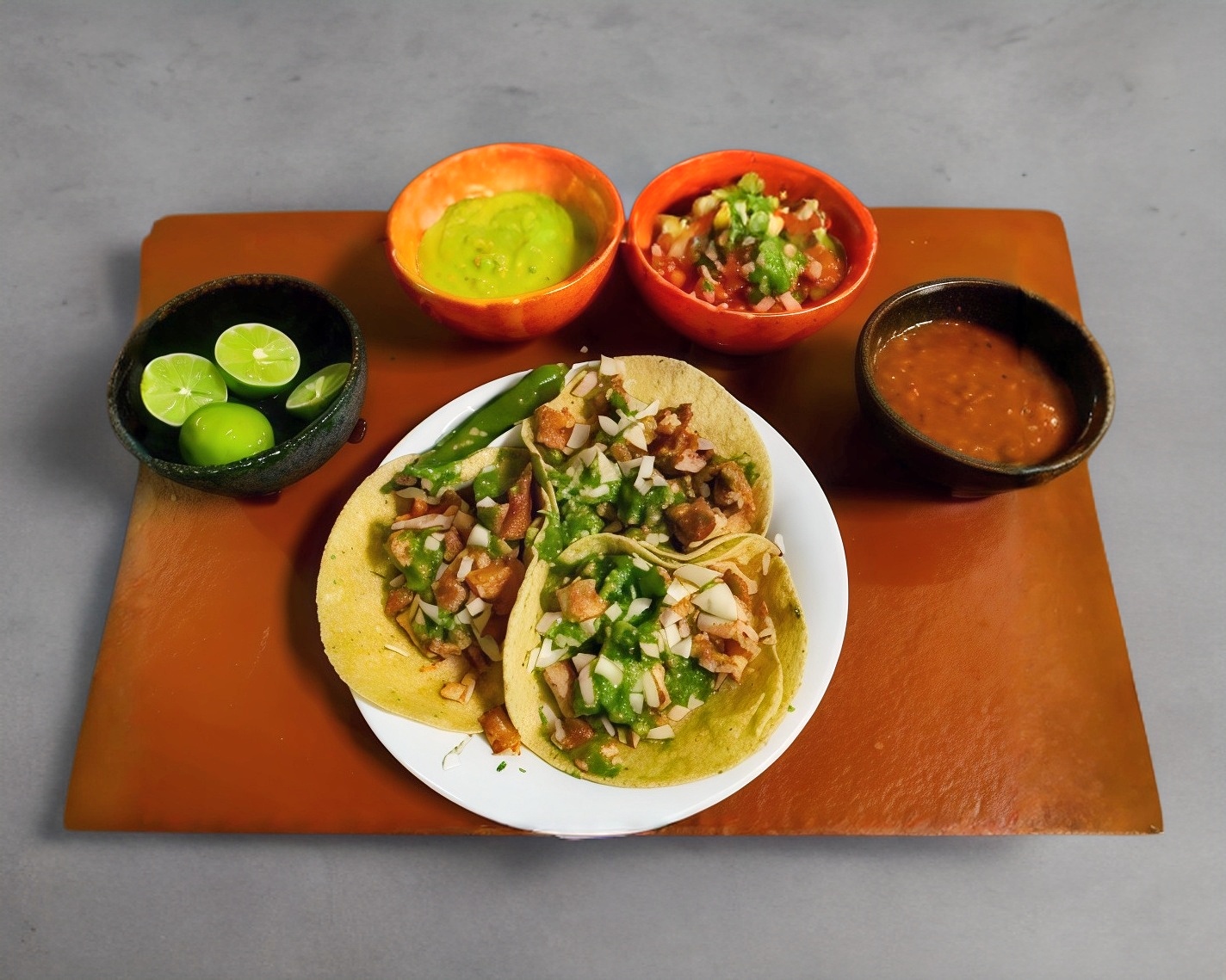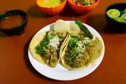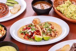 1 Pieza. de tortilla de maíz taquera, con frijol, cebolla, cilantro y salsas como acompañante.