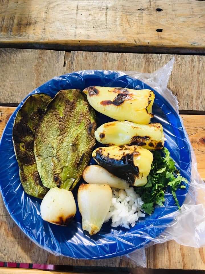 1 kilo de carne mixta peso en crudo (Res, cerdo y adobada), 1 pza. de chorizo, 1 pza. de salchicha, 4 quesadillas, 12 tortillas de maíz hechas a mano, salsas y frijoles.