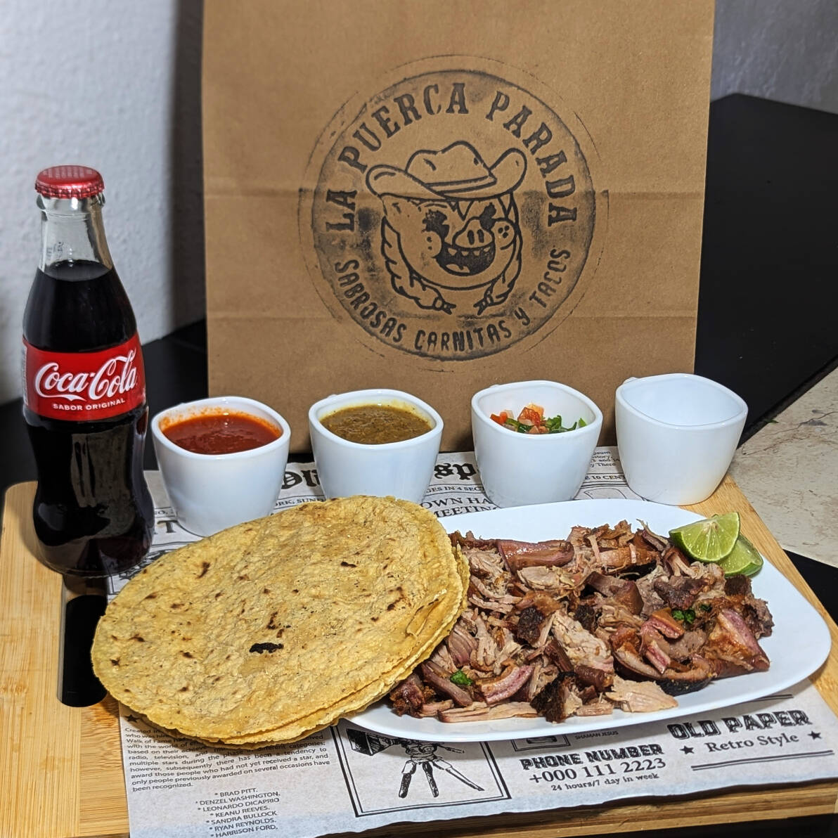 1/2 kg de carnitas, surtidas, 8 tortillas, 1pz de frijoles de la puerca 200g + acompañamientos.