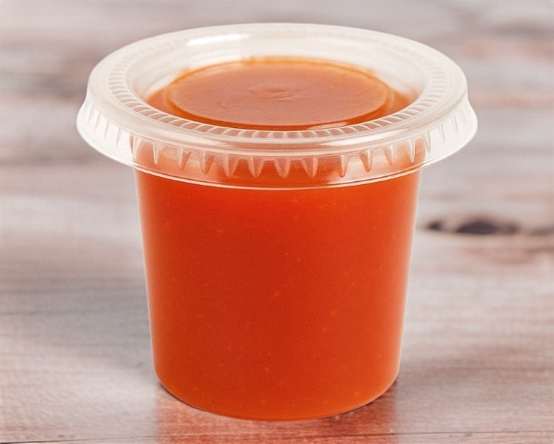 Salsa echa con una mezcla de cebolla y ajo frito con ajonjolí y mucho picante. 2 oz