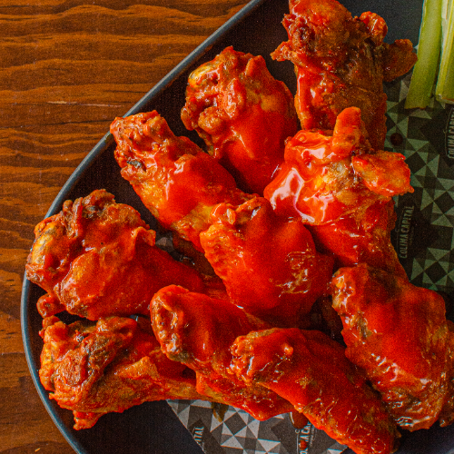 Trozos de pollo empanizados, crujientes por fuera y jugosos por dentro. Acompañados de papas a la francesa, aredezo ranch y bañados en tu salsa favorita: BBQ, Búffalo, Habanero, Lemon pepper, Chipotle tamarindo, Mango habanero o Parmesano.
