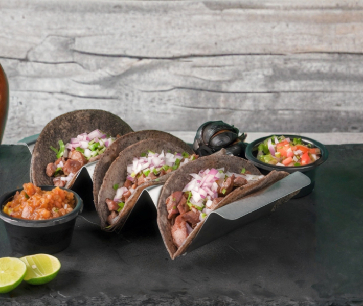 Arrachera, frijoles, guacamole, cebolla frita, lechuga y jitomate