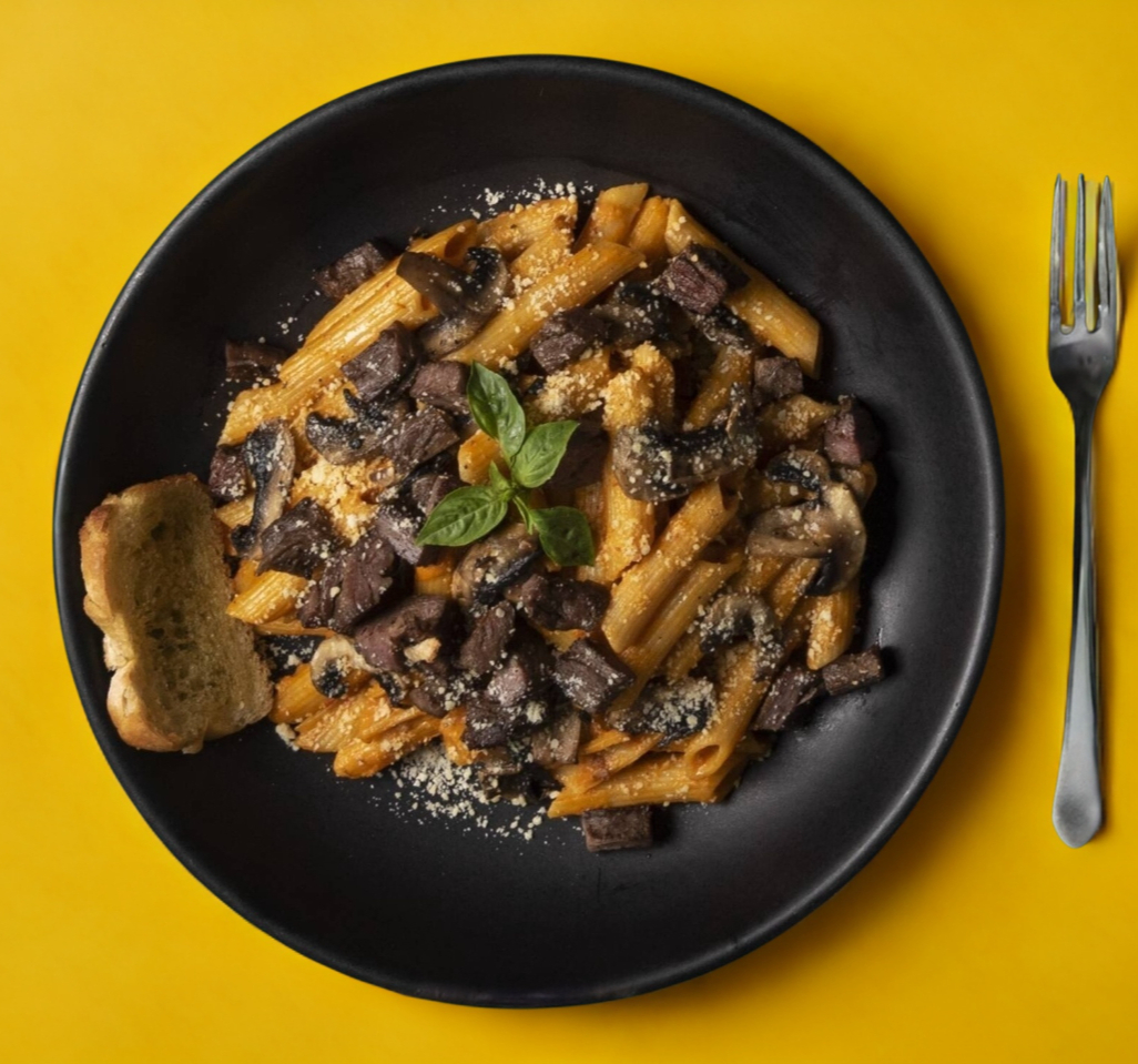 Salsa cremosa de chipotle, champiñones y tiras de arrachera