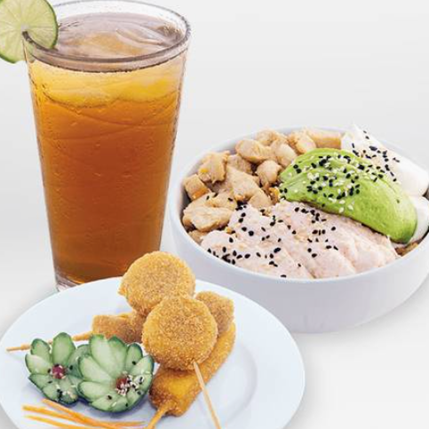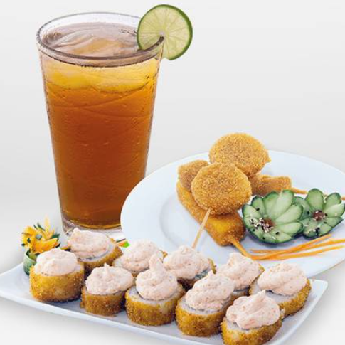 1 Orden de sushi tradicional, 1 orden de brochetas y 1 bebida.