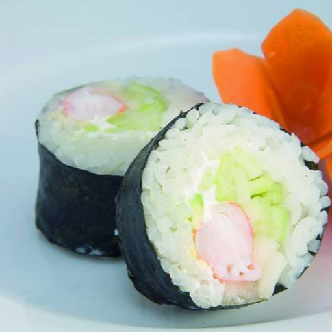 10 pzas De rollo, por dentro: queso philadelphia, aguacate, pepino y camarón o surimi, por fuera: alga nori.