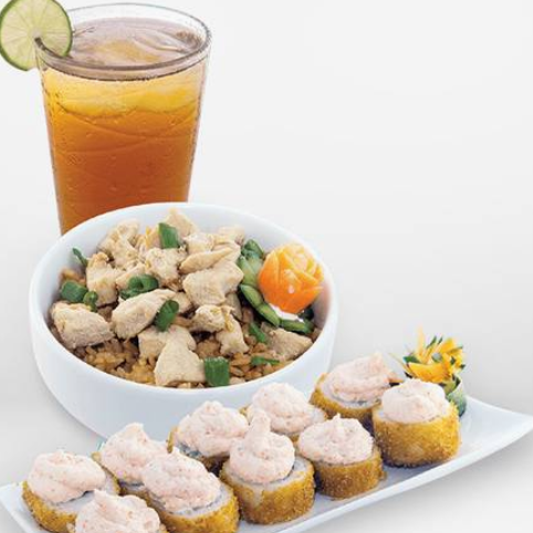 1 Orden de arroz, 1 orden de sushi tradicional y 1 bebida.