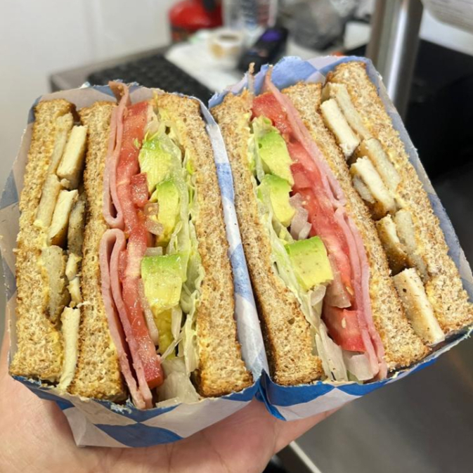PREPARADO CON POLLO A LA PLANCHA, JAMON DE PAVO, TRES PIEZAS DE PAN INTEGRAL, LECHUGA, JITOMATE, CEBOLLA, AGUACATE, ADEREZOS Y SALSA
