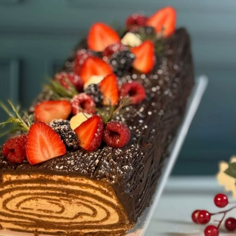 Rebanada de Tronco Sin azúcar y Libre de Gluten. Una experiencia gourmet elaborada con base de Almendra y Coco, rellena de una exquisita crema de fruto. Su textura cremosa y su espectacular diseño lo hacen único.