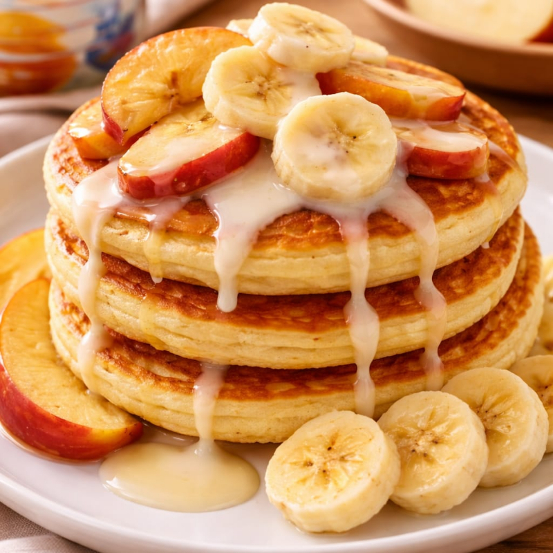 3pz de hot cakes acompañado bañado en chocolate liquido