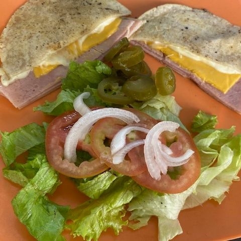 Tortilla de harina, jamon,queso amarillo, queso oaxaca,