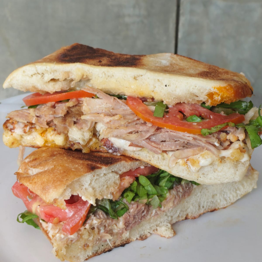 Telera con capa de queso asadero, lomo a elegir, lechuga italiana y jitomate en rodajas.