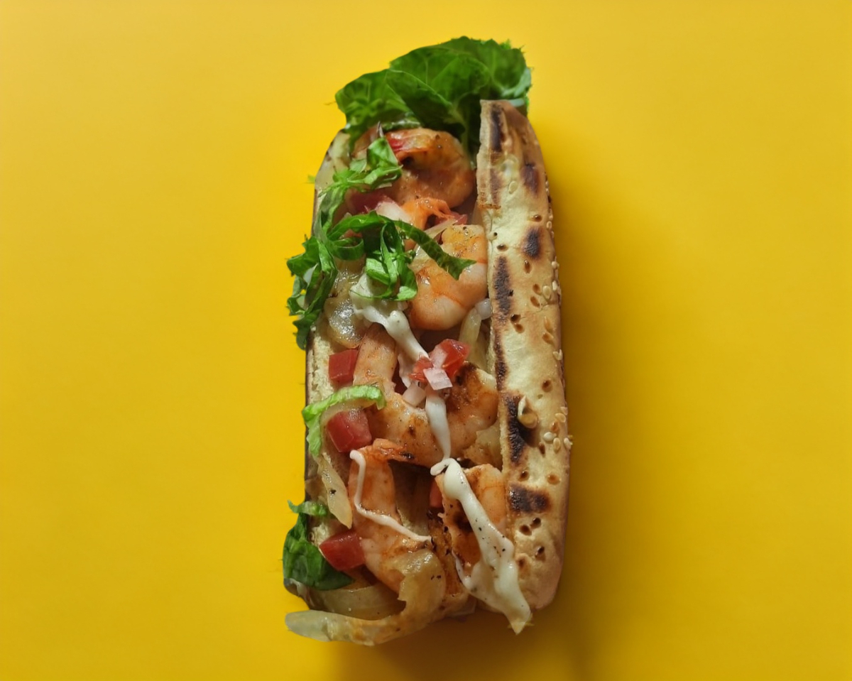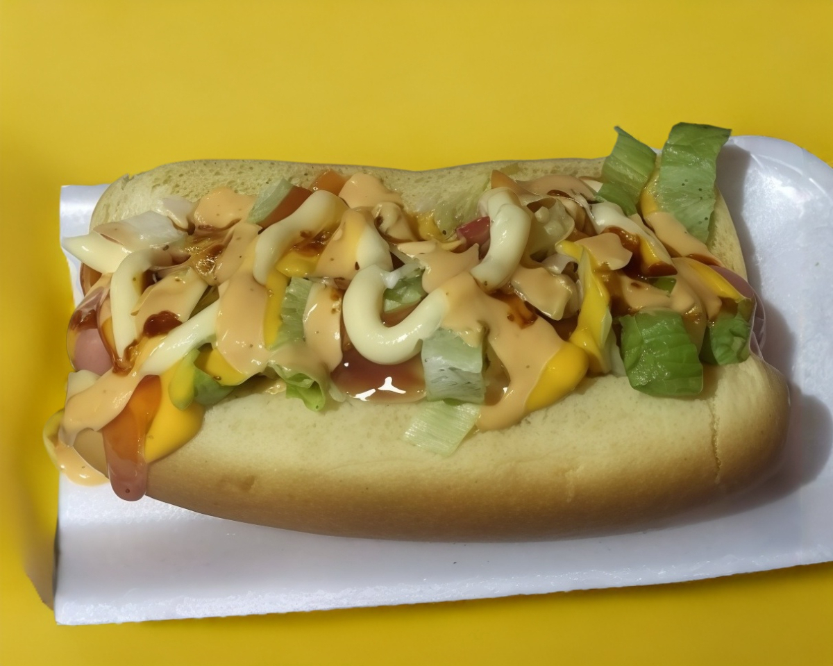 Delicioso Dogo de 23cm Relleno de Crujientes Camarones Gratinados.