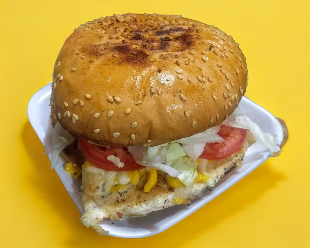 Pan Artesanal, Pechuga de Pollo a la Plancha Gratinada con Queso Asadero (no incluye papas)
