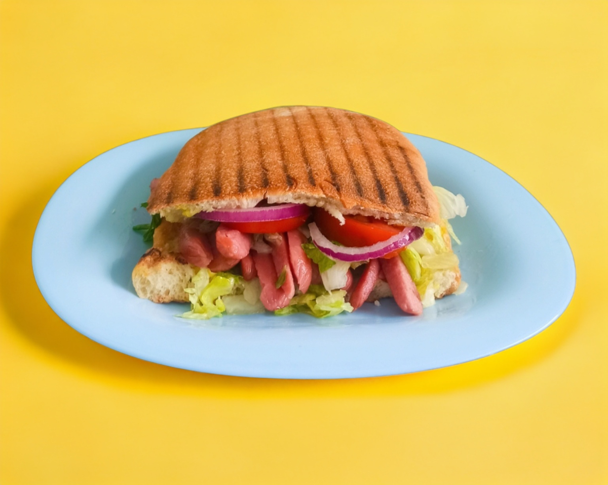 Lomo natural, queso gouda, queso amarillo y jamón. Todos los sándwich incluyen aderezo de la casa, lechuga, jitomate, cebolla y chile jalapeño.