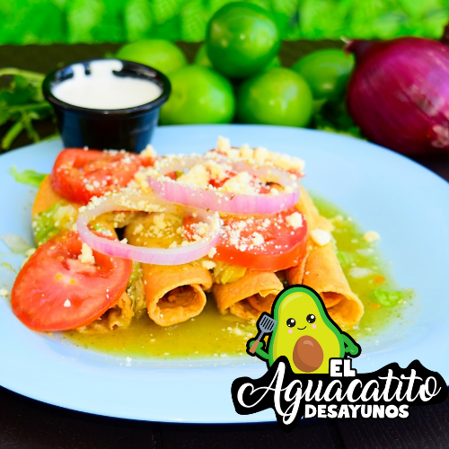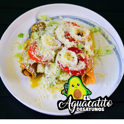 4 flautas,lechuga,jitomate,cebolla,queso ,salsa de tomate,crema