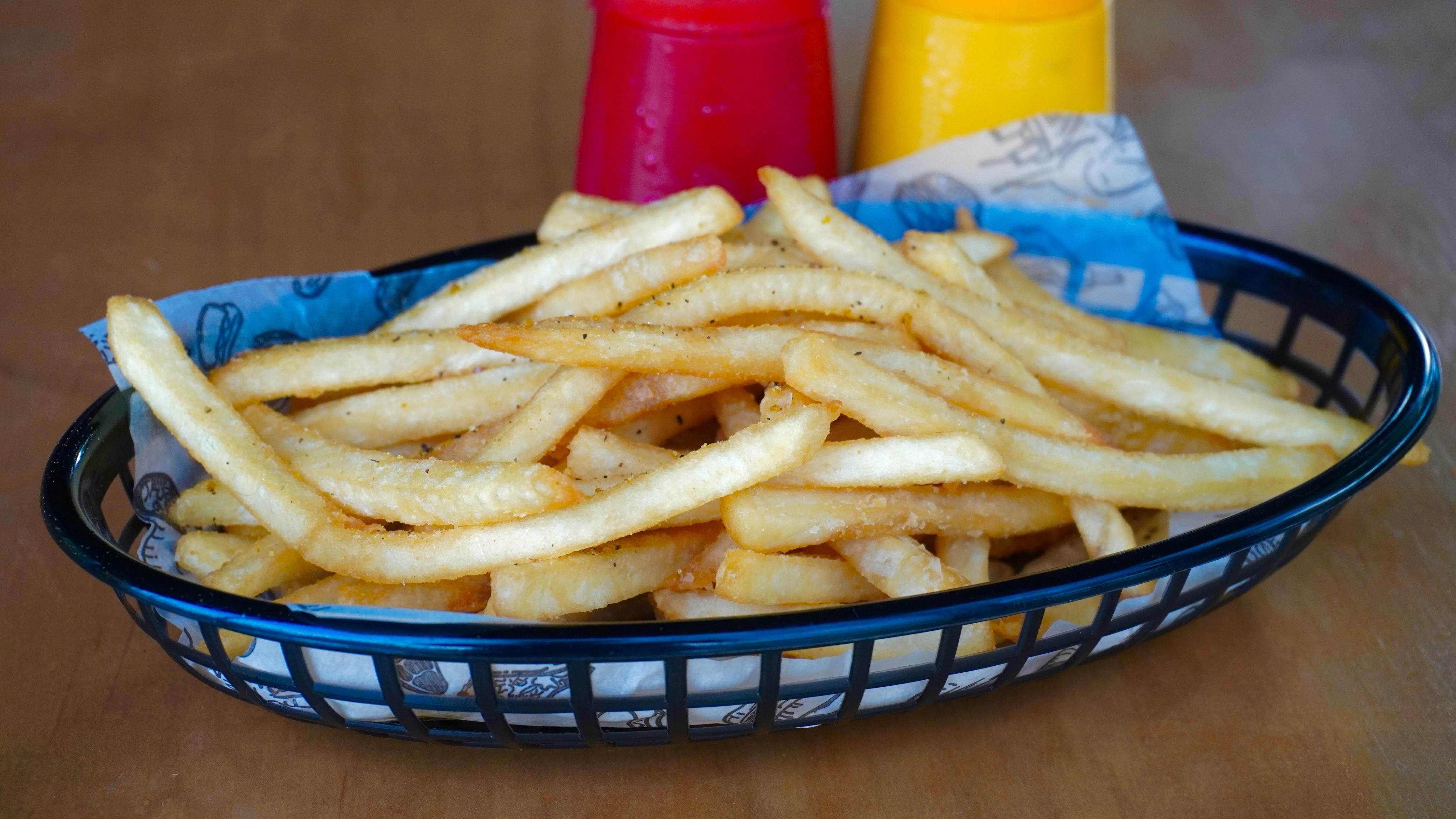 Orden para compartir de papas a la francesa con el sazón de la casa.